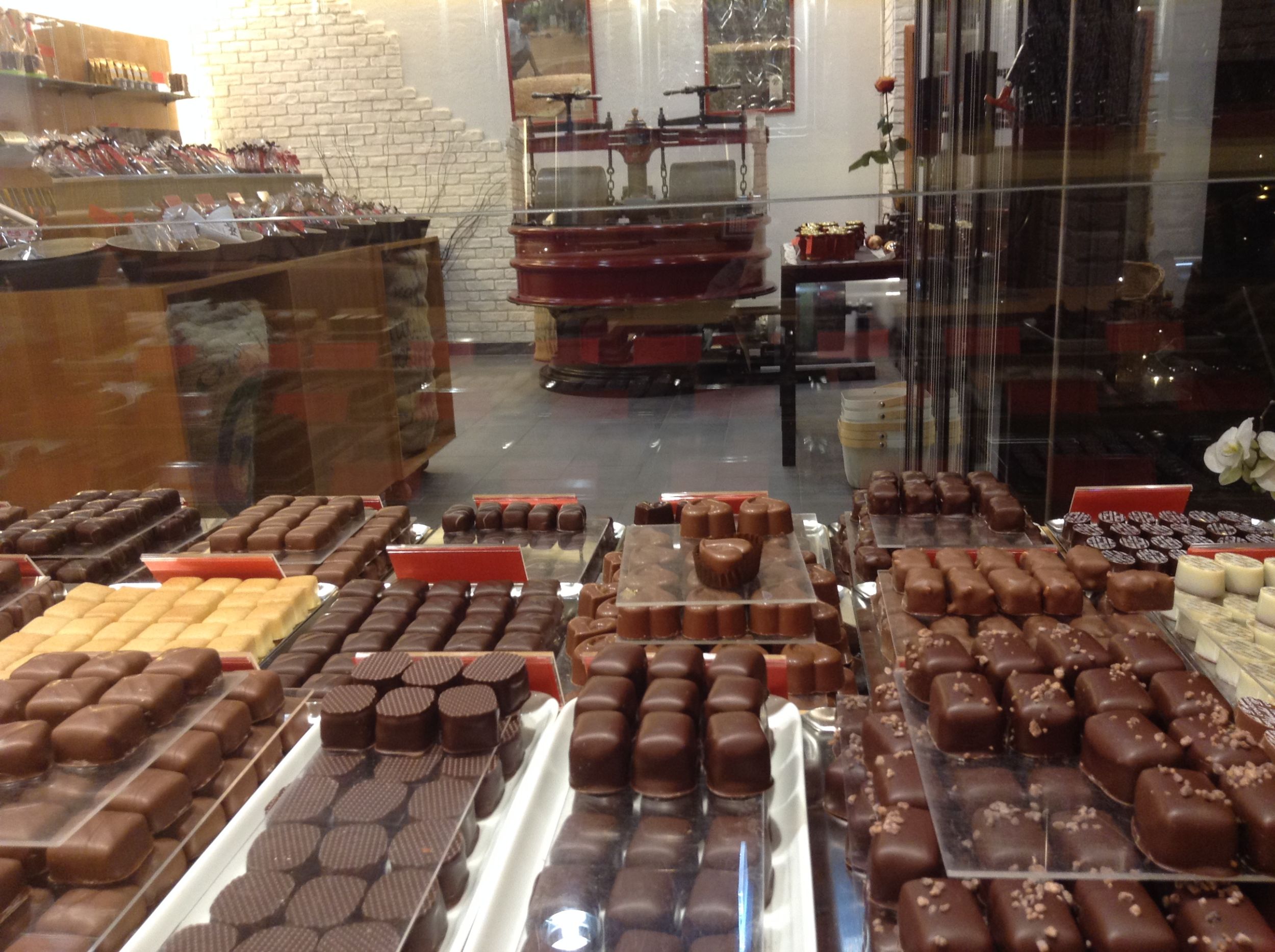 Das Highlight des Geschäfts? Die Produktion der köstlichen Schokoladenkreationen vor Ort, die sich durch das Fenster der Manufaktur beobachten lässt.