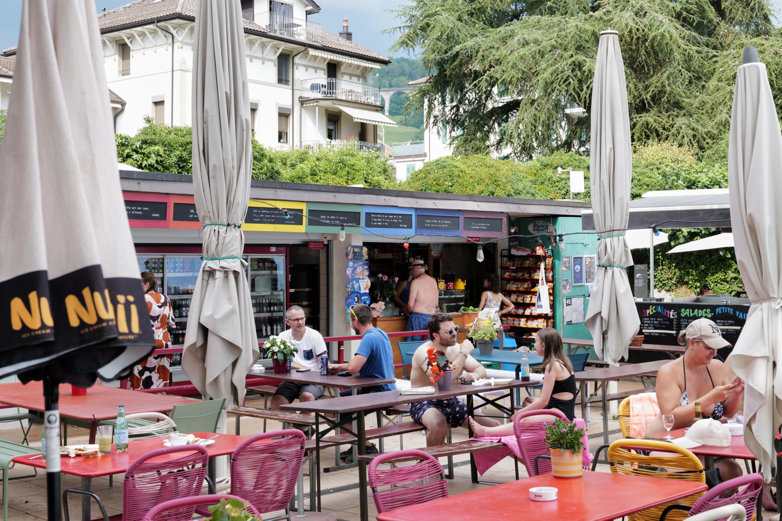 On the shores of Lake Geneva, this is the place to meet for an aperitif and to share a timeless moment, filled with laughter, sunset and drinks. Every day is a holiday here.