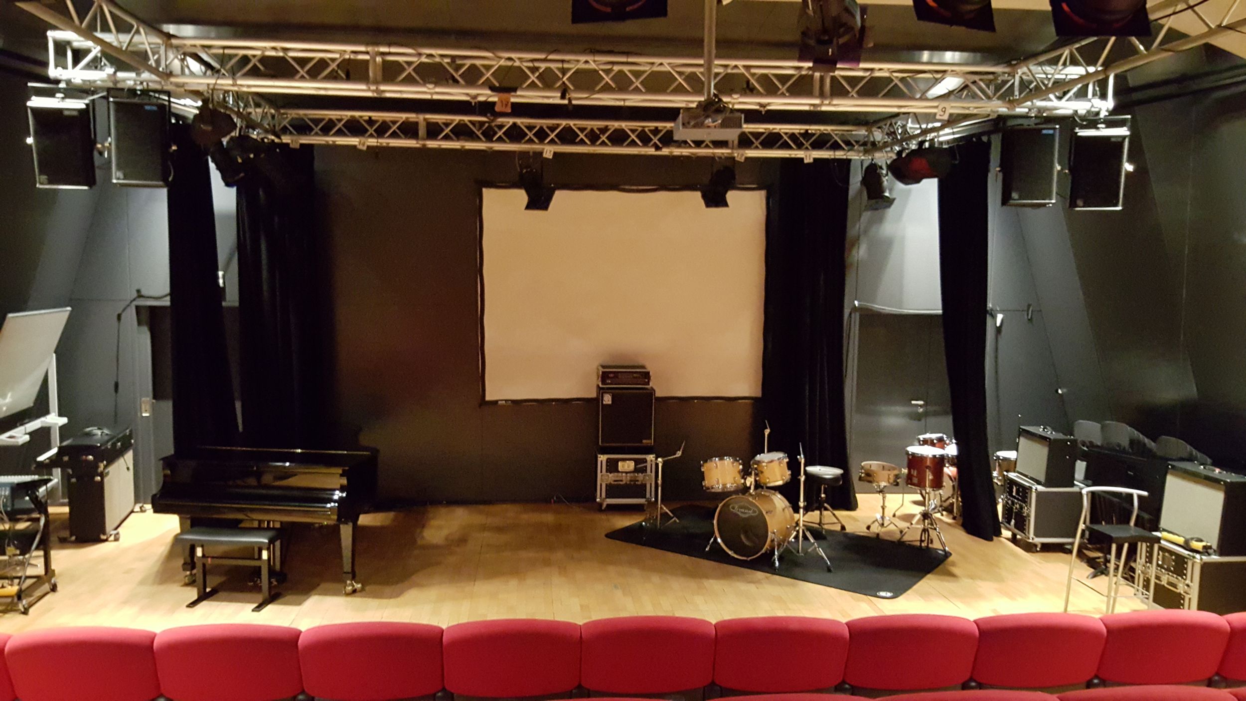 L’école met à disposition, avec équipement technique et musical, un atrium, un auditorium, une salle de conférence et des salles individuelles. Cafétéria sur place. Ecole fermée de mi-juillet à mi-août.